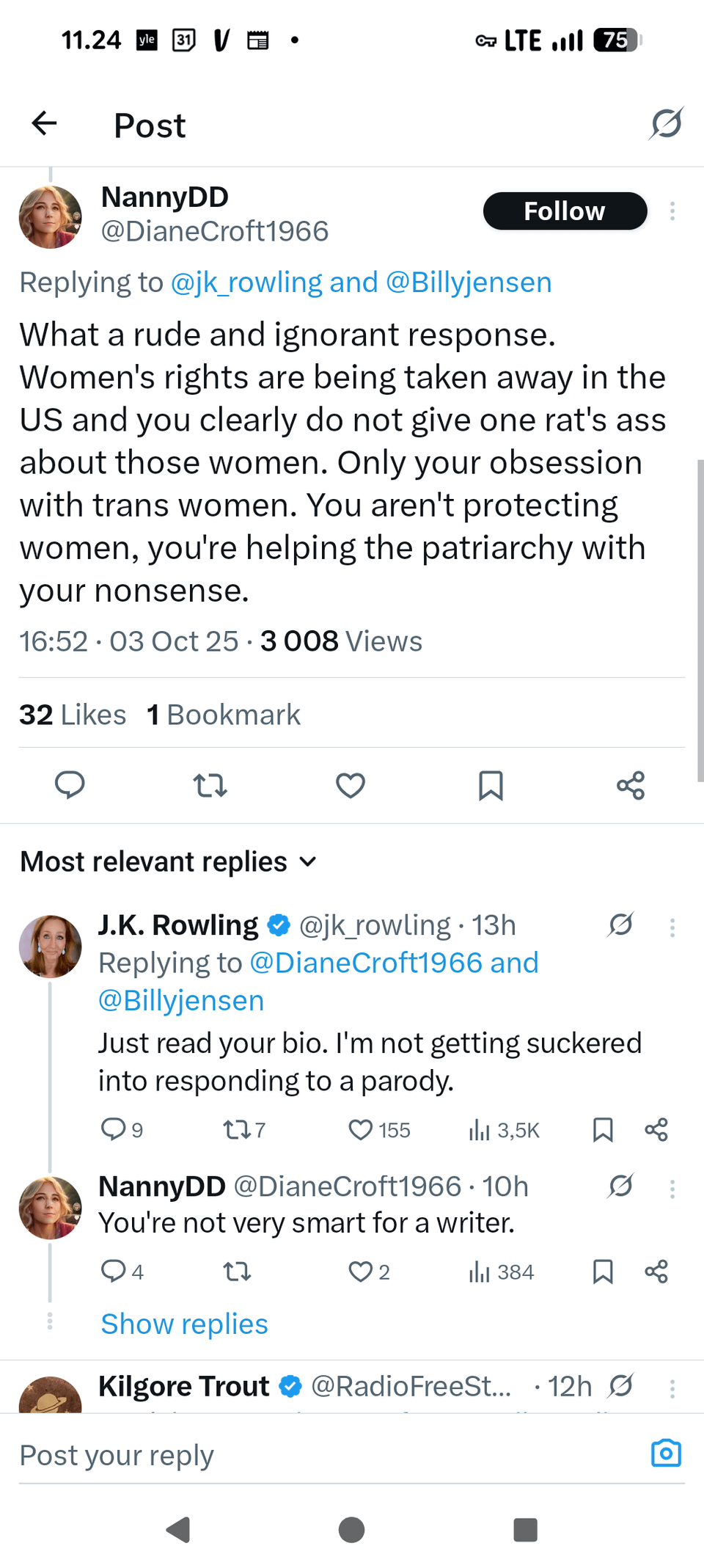 She’s been aligning herself with far-right terf Kellie Jay Keene for years, she’s tacitly endorsed Trump, she’s already deep in the fascism bog. A mold-addled lost cause.