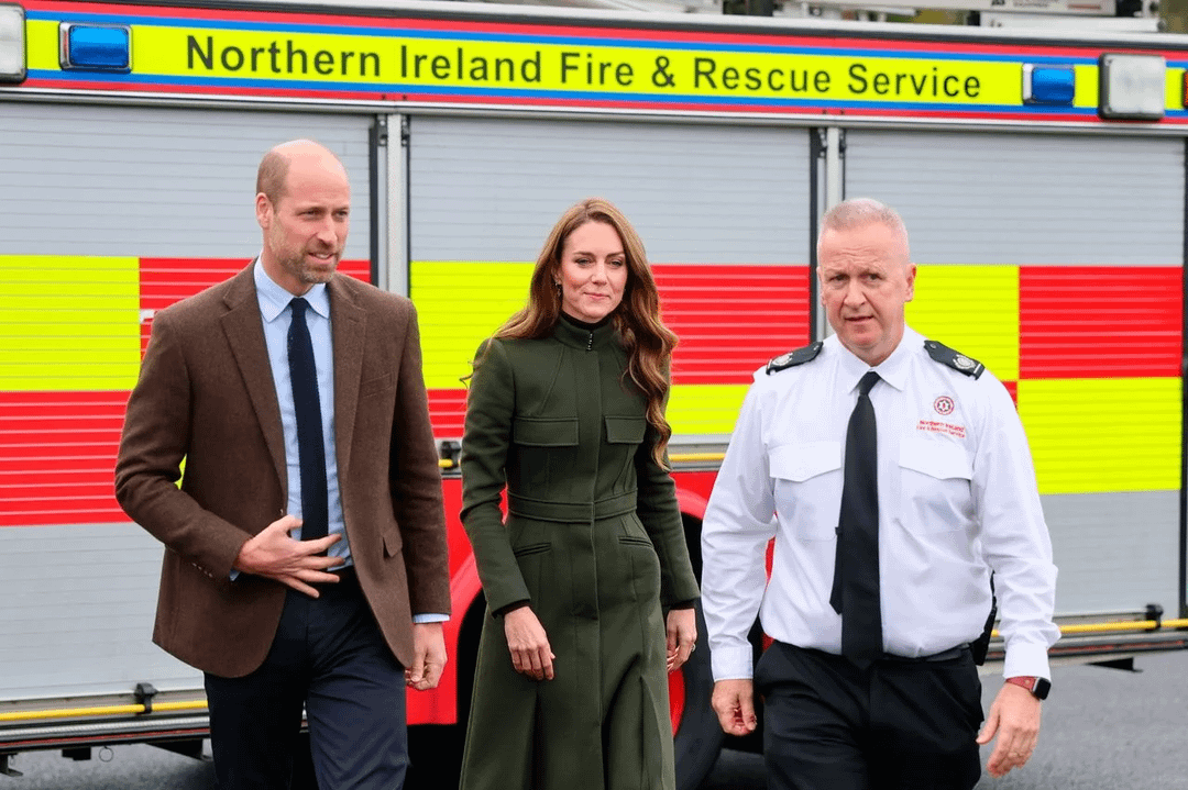 “The Prince and Princess of Wales rode in a fire truck and watched trainee firefighters taking part in drills during a surprise visit to Northern Ireland”