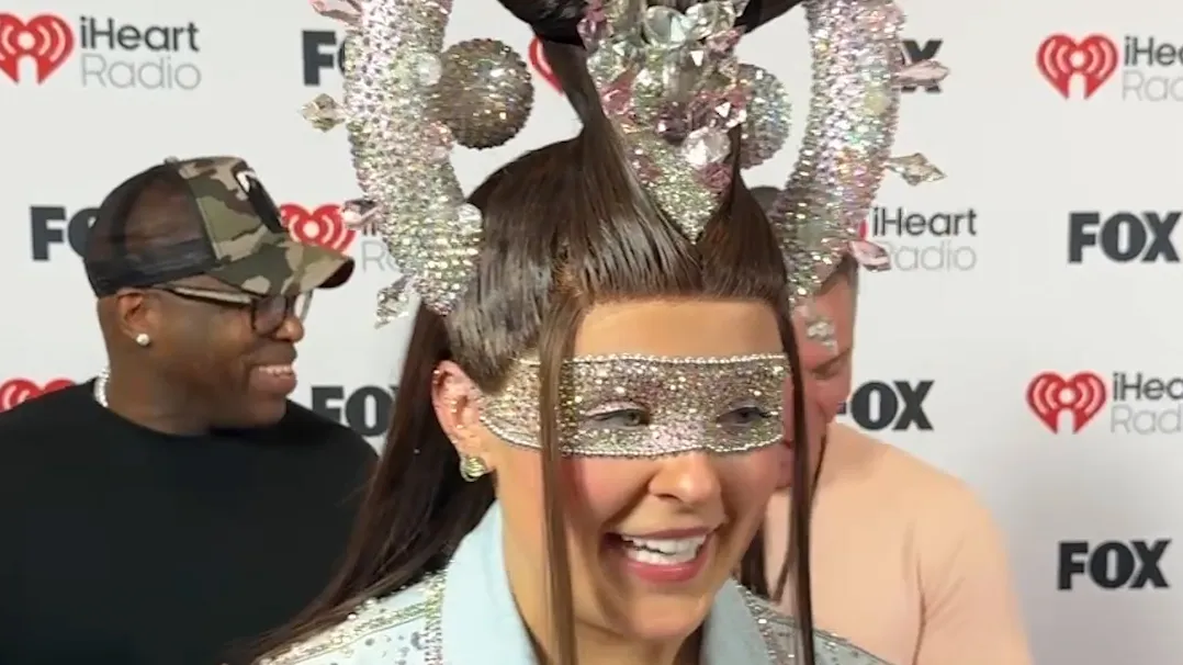 JoJo Siwa teased the announcement of a “massive project” that’s coming soon while wearing a massive rhinestone headpiece at iHeartRadio Music Awards.