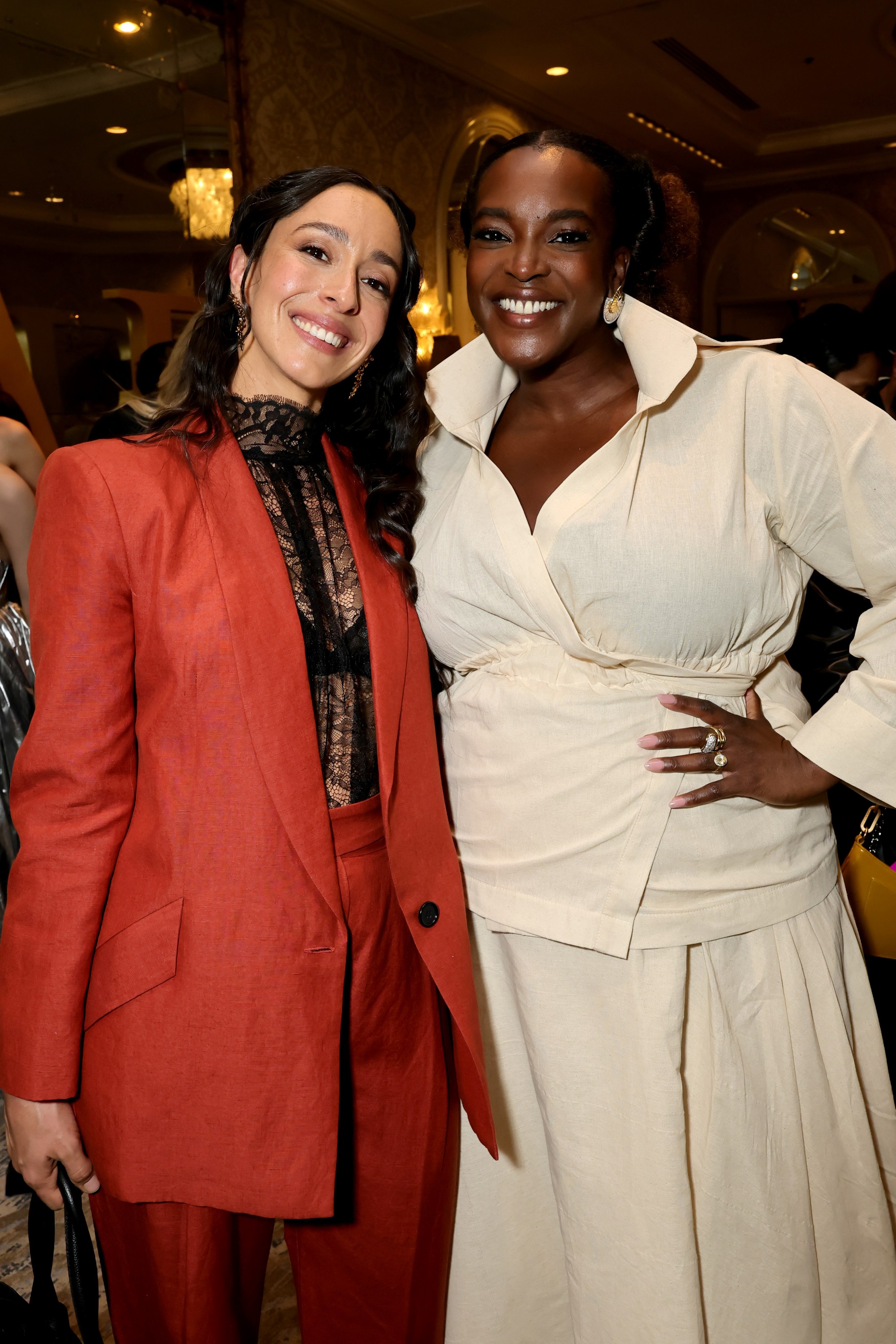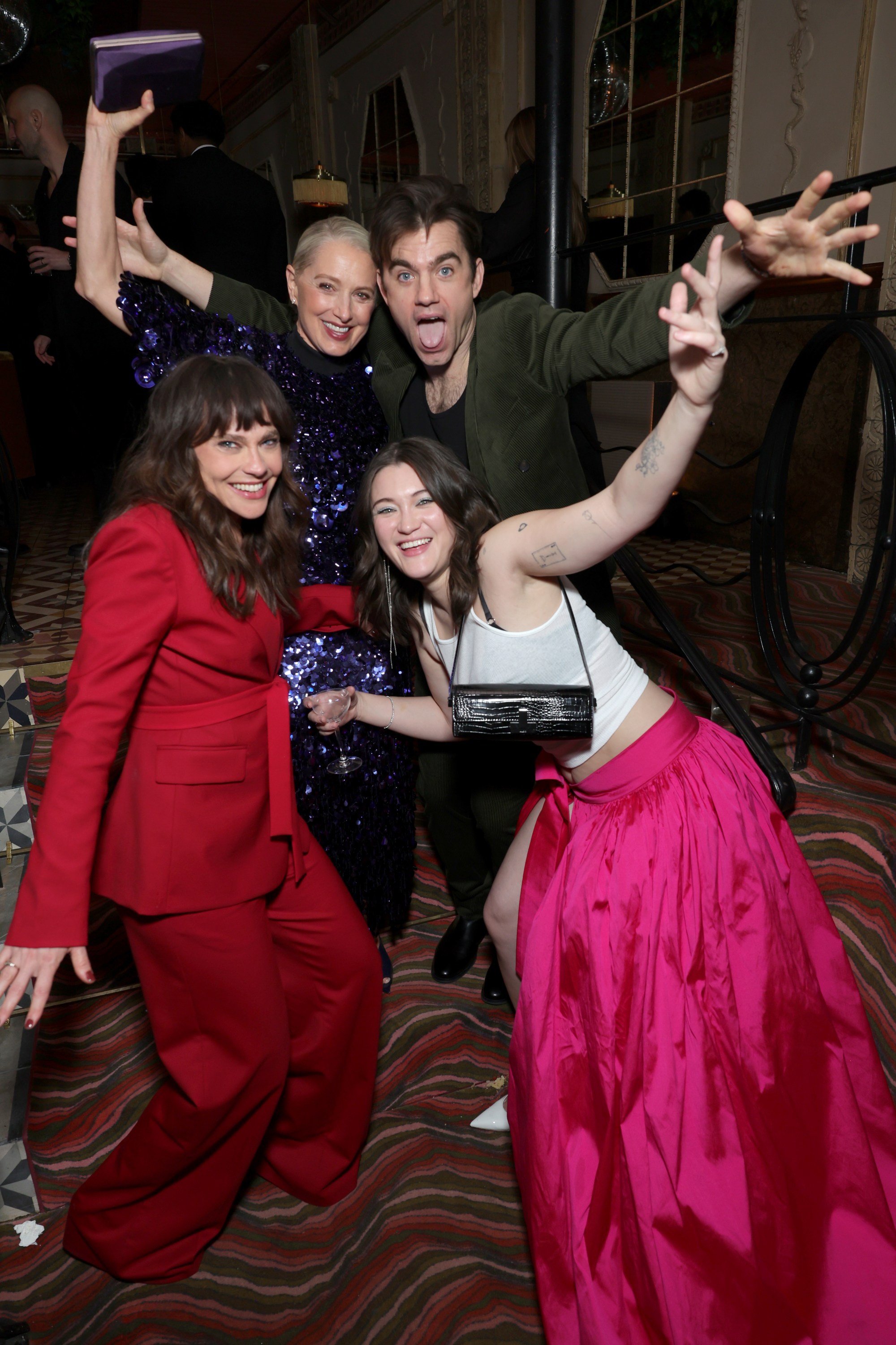 Conner Storrie and Hudson Williams? Check. The Heated Rivalry guys, possibly now cloned and at multiple parties at once, were the only talent present Saturday night at Bar Marmont who inspired many a guest to violate the no-photos policy, with selfie after selfie. Tessa Thompson was there. So was much of the cast of Abbott Elementary. And, for anyone still on Team Jeremiah, The Summer I Turned Pretty’s Gavin Casalegno showed. Zooey Deschanel and her fiancé, Jonathan Scott, chatted with Kristen Bell and Dax Shepard, who also shared a couch with Kyra Sedgwick and Kevin Bacon. Power couples, unite! Ghosts of Real Housewives past and present, Lisa Rinna and Rachel Zoe, were both spotted near the caviar bar — though if they crossed paths, we missed it. Kate Beckinsale wore a petticoat that was too obscenely large for the event and the venue, unless you were trying to make your way through the packed crowd and found yourself in its wake. In that case, it was a lifesaver. Thanks, Kate. Notably, former Amazon MGM Studios boss Jen Salke was in attendance for her first Amazon Globes party since departing for a rich first-look deal across film and TV. It’s always nice to see an amicable split. Oh, and Shaboozey valeted his Harley on Sunset Blvd. Everybody at the Bar (Marmont) get tipsy, indeed.
