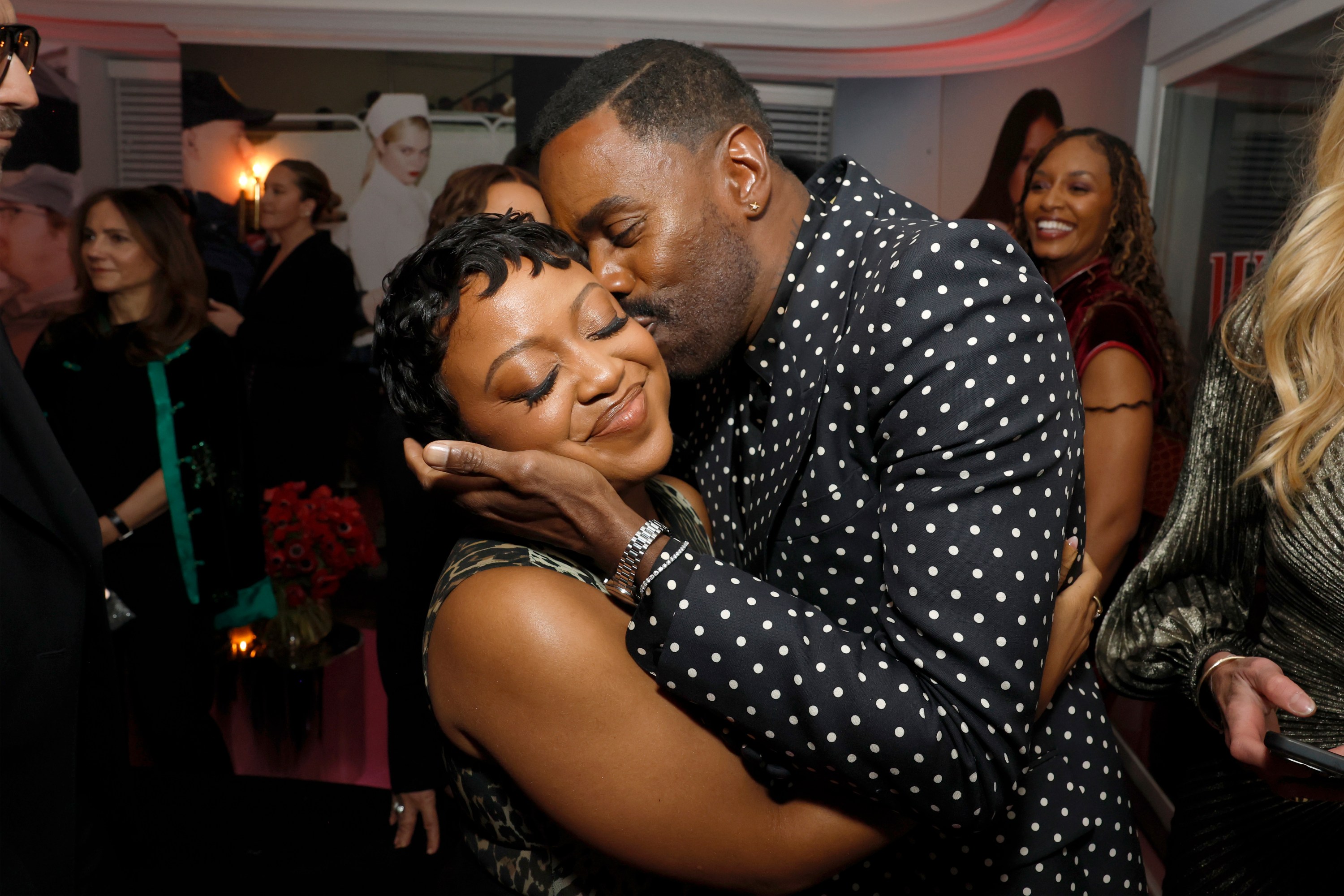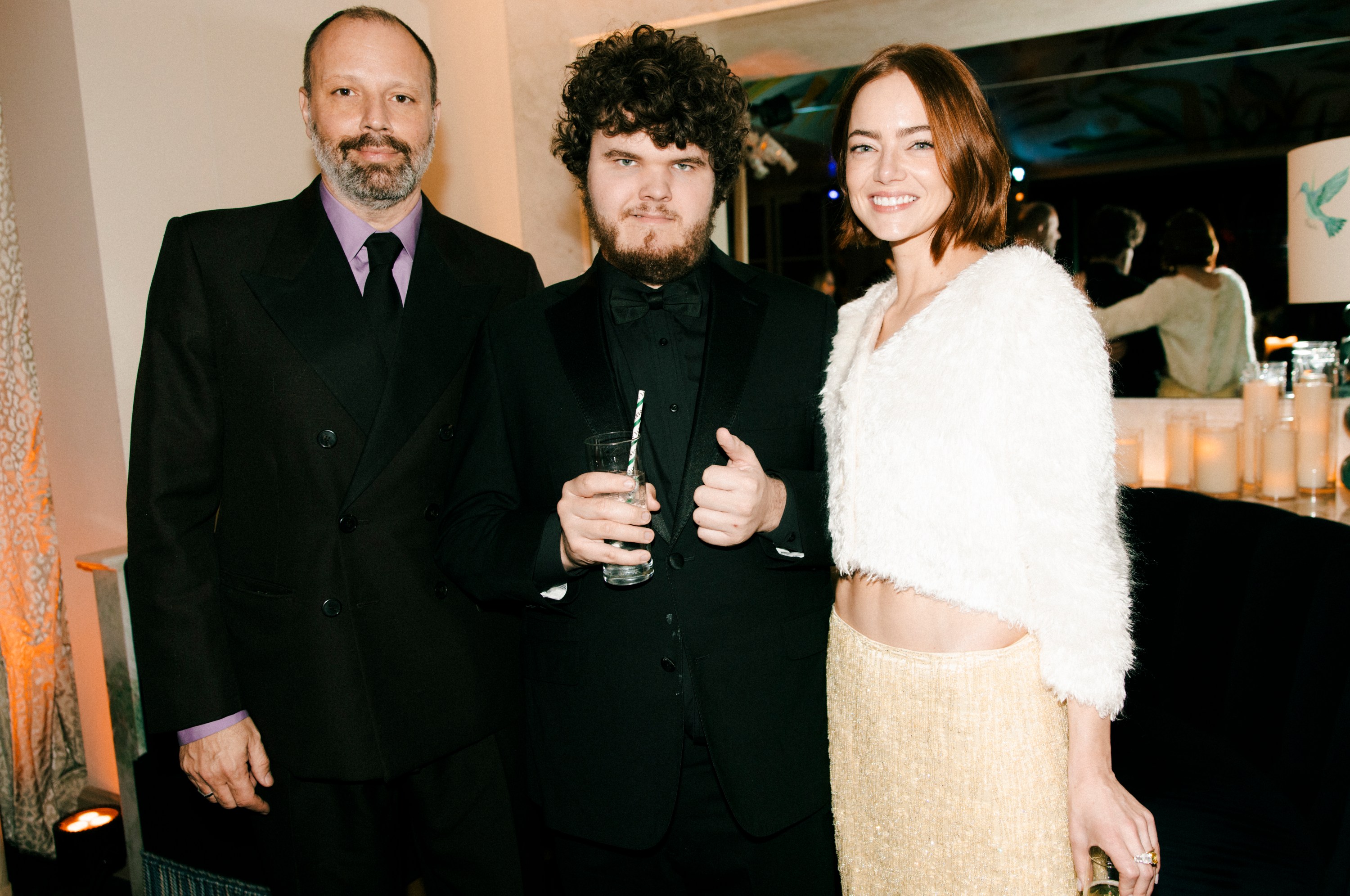 If there were an award for best bash of Golden Globes weekend — and, at this point, why not? — just give it to W already for Saturday night’s Chateau Marmont penthouse celebration. The event boasted more stars per square inch of any event outside of the Globes itself: Emma Stone (holding court with director Yorgos Lanthimos), Michael B. Jordan, Jacob Elordi (who had guests swooning because he brought his parents, who kept taking pictures of his oversized face on the wall), Benicio del Toro (when was the last time you saw him at a party?), Dwayne Johnson, Chase Infiniti, Tessa Thompson, Elle Fanning (with sister Dakota and boyfriend, Gus Wenner, in tow), Sydney Sweeney and Mia Goth. Sweeney and Seyfried had a Housemaid reunion and bear-hugged it out amid flashbulbs, while the Euphoria star was seen in close conversation with her HBO series co-star Maude Apatow. Lana Del Rey arrived super early, just after the 8 p.m. start time. Heated Rivalry phenoms Connor Storrie and Hudson Williams came on the later end, after 11 p.m., causing a commotion with their arrival and impromptu photo shoot on a roses-covered bed. Kendall Jenner and Hailey Bieber turned heads as they navigated the party, with Bieber lightly tapping Jenner’s rear in the direction they were headed. The White Lotus stars on the scene included Parker Posey, Patrick Schwarzenegger and Walton Goggins. Katherine LaNasa arrived with her husband, Grant Show, fresh from a wrap party for The Pitt and intent on finding her close friend Rhea Seehorn, who was on the terrace with her husband. If you need more convincing about the award-worthy status, how about this: Jennifer Lopez, fresh from a residency at Caesars Palace, performed for free, dancing it up in the penthouse living room in a glittering red gown while surrounded by a gaggle that included costume designer Ruth E. Carter. Then, close to midnight as Kevin Bacon and Kyra Sedgwick were waiting for their car, a massive SUV pulled past the crush of fans and Chateau security all the way down the cobblestone driveway and into the garage so its VIP passenger could make a secretive entrance: Leonardo DiCaprio jumped out with model girlfriend Vittoria Ceretti and headed upstairs. As we headed home, Josh Safdie jumped out of his car, too. An autograph hound asked for his signature, only for Safdie to politely decline, “Not on blank paper.” Smart man.