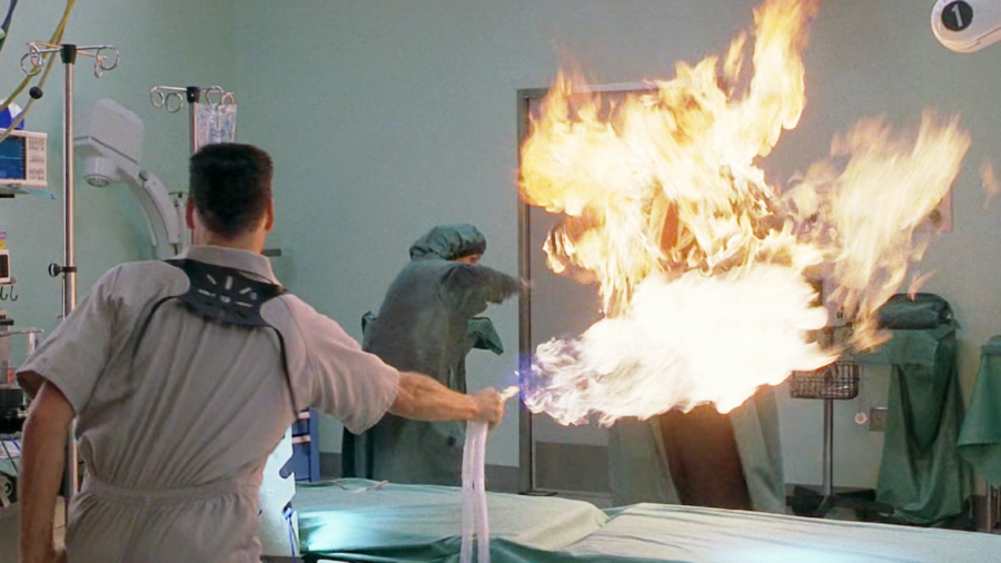 Every single action thriller trope you can think of shows up in Desperate Measures. I lost count of how many times a gun is pointed at the bad guy while that same bad guy is pointing a gun at the only doctor capable of performing the transplant. Every time McCabe is cornered, the movie reminds us that if he dies, his bone marrow dies with him. Because McCabe is a sociopath with a 150 IQ, he’s always one step ahead and more than willing to cause maximum destruction while staying just out of reach of law enforcement.