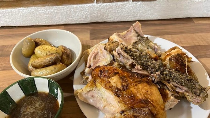 Secondary, my bro cooks fingerling potatoes in the bottom of the rotisserie, they are literally bathing in chicken fat.