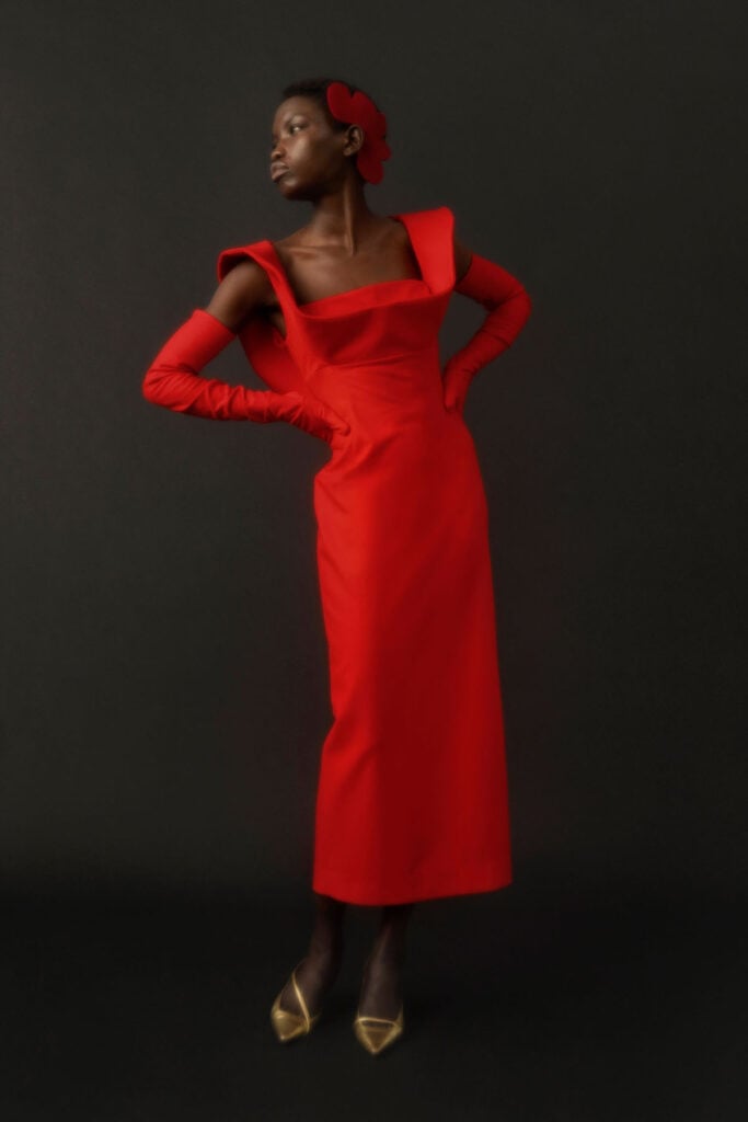 Xochitl Gomez was a lady in red wearing a Rosie Assoulin Fall 2022 fitted sheath with a structured, sculptural bodice, a silhouette we first saw on Jenny Slate back in 2023 at the Oscar Nominees Luncheon. While the red pumps made sense, did the Kate Spade New York Deco quilted mini flap chain crossbody need to match so closely?