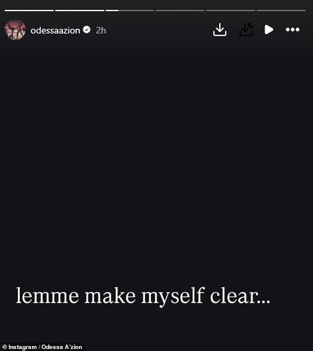 In a lengthy post on Instagram Stories, Odessa apologised to her followers and admitted she ‘hadn’t read’ the book her role was based on