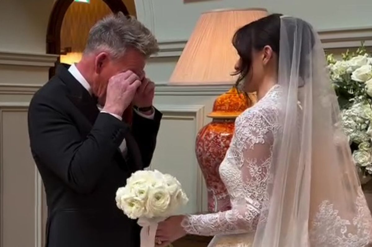 A touching video of Gordon Ramsay breaking down in tears as he saw his daughter Holly in her wedding dress for the first time went viral.