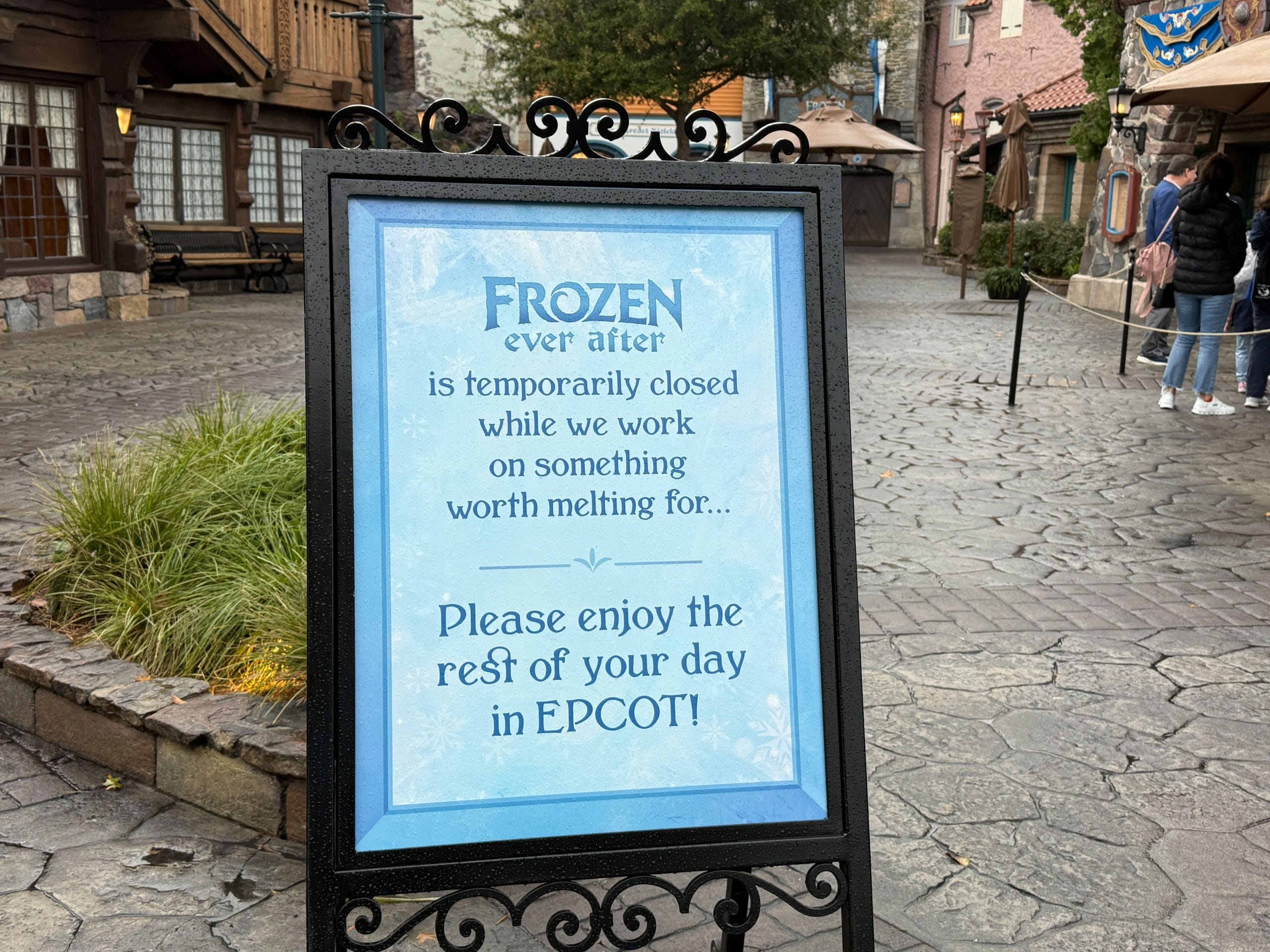 According to the Walt Disney World calendar, Frozen Ever After will resume operations on Thursday, February 12, 2026. The ride has been closed since January 26 for the installation of new Audio-Animatronics of Anna, Elsa, and Kristoff that have physical faces instead of projected ones.