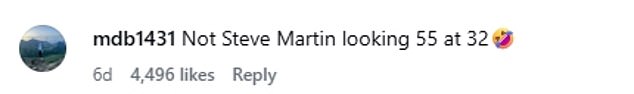 ‘Not Steve Martin looking 55 at 32… We look half our age, they look twice their age’, a fan commented on Instagram.