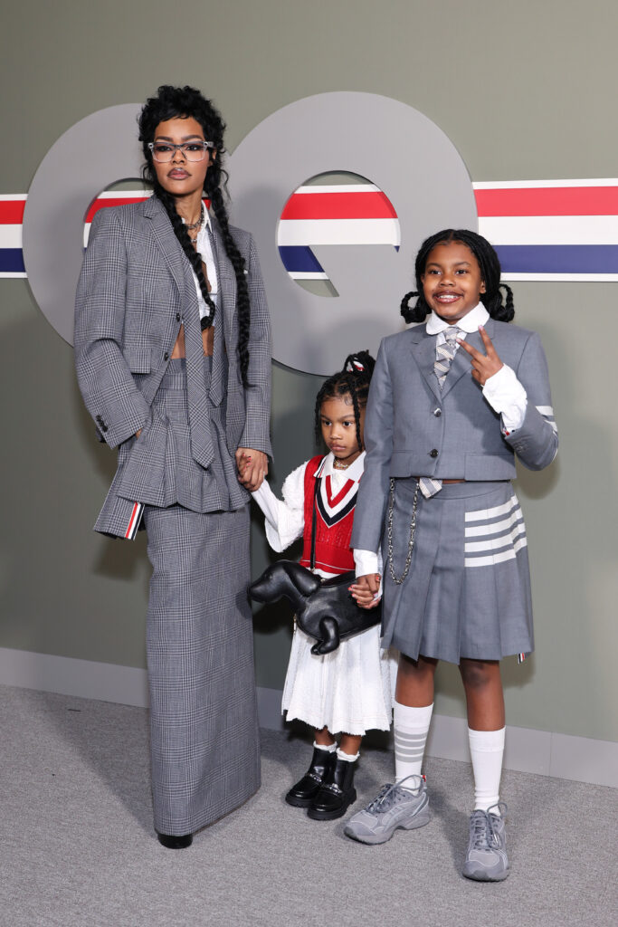 Teyana Taylor, Rue Rose Shumpert and Iman Tayla Shumpert Jr. at the GQ Bowl, presenting the Thom Browne Fall 2026 collection held at Legion of Honor on February 06, 2026 in San Francisco, California. (Photo by Chad Salvador/WWD via Getty Images)