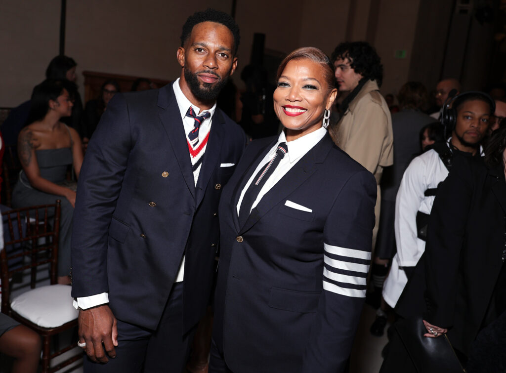 Victor Cruz and Queen Latifah at the GQ Bowl, presenting the Thom Browne Fall 2026 collection held at Legion of Honor on February 06, 2026 in San Francisco, California. (Photo by Chad Salvador/WWD via Getty Images)