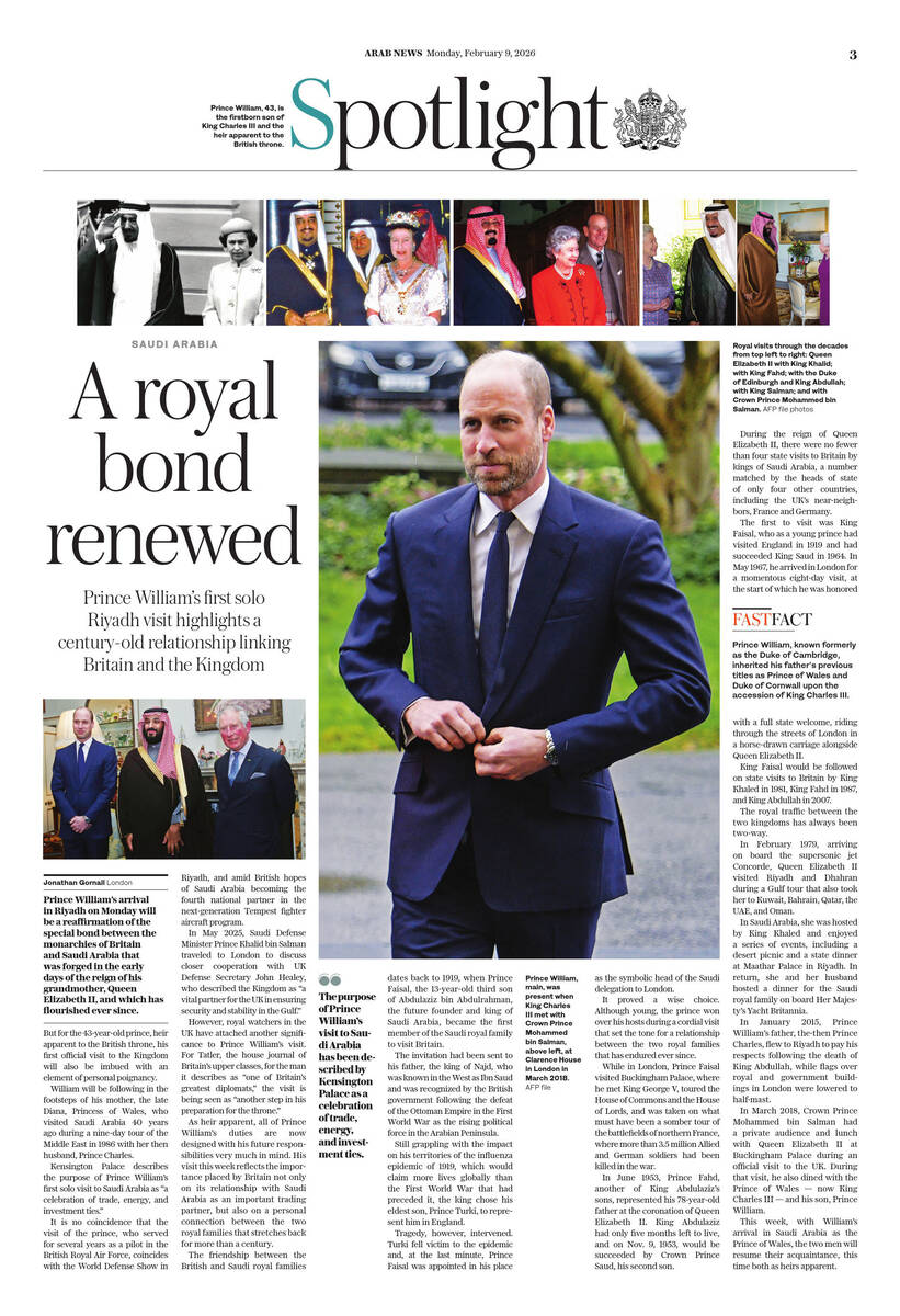 LONDON: Prince William’s arrival in Riyadh on Monday will be a reaffirmation of the special bond between the monarchies of Britain and Saudi Arabia that was forged in the early days of the reign of his grandmother, Queen Elizabeth II, and which has flourished ever since.