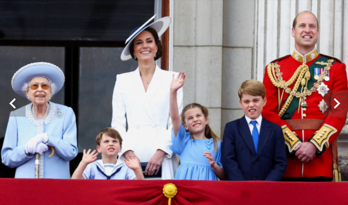Queen Elizabeth, Prince William and Catherine, Duchess of Cambridge, along with their children appear on the balcony of Buckingham Palace on June 2, 2022. (Reuters)