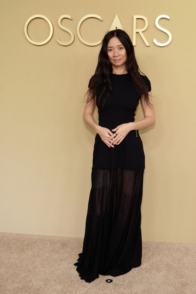 Chloé Zhao wore FFORME Fall 2025, staying true to her understated aesthetic. The sheer skirt adds lightness to what could have been a straightforward black look. It is subtle, but that transparency shifts the mood and prevents it from feeling flat.