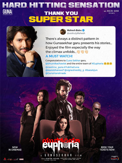 After watching the film, Mahesh took to social media and shared his thoughts. “There’s always a distinct pattern in how Gunasekhar garu presents his stories… Enjoyed the film, especially the way the climax unfolds. A must watch! Congratulations to Gunasekhar garu, Bhumika Chawla, and the entire team of Euphoria.”