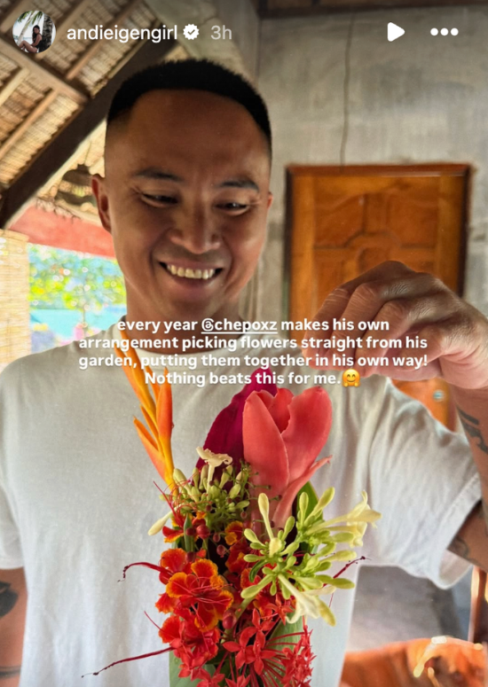Surf coach Philmar Alipayo continued his tradition of making his own bouquet freshly picked from his garden to give to his wife, Andi, on Valentine’s Day.
