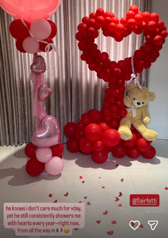 “He knows I don’t care much for [Valentine’s Day] yet he still consistently showers me with hearts every year—right now, from all the way in [France],” Coleen wrote in her Instagram story.
