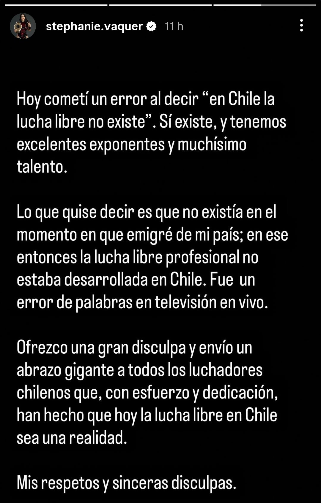 “Today I made a mistake by saying, ‘In Chile, professional wrestling doesn’t exist.’ It does exist, and we have excellent representatives and a tremendous amount of talent.