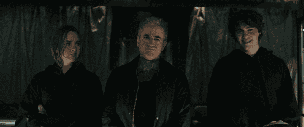 Taking a bit of inspiration from Part 2, this is all about revenge as the family of Scream 5’s Richie Kirsch are out to make Sam and Tara Carpenter’s life a living hell. They want to torment Sam in particular since she’s the one that landed the killing blow on Richie, and introduce the audience to a ton of objects from the franchise’s past. That element is great but there’s something that doesn’t quite work about the reveal and it lands with a bit of a thumb. While the overacting element can be a bit of a staple of the Ghostface reveal, Dermot Mulroney takes it a bit far as it’s more humorous than anything. Liana Liberato actually seems in her element but she’s featured the least of the three killers.