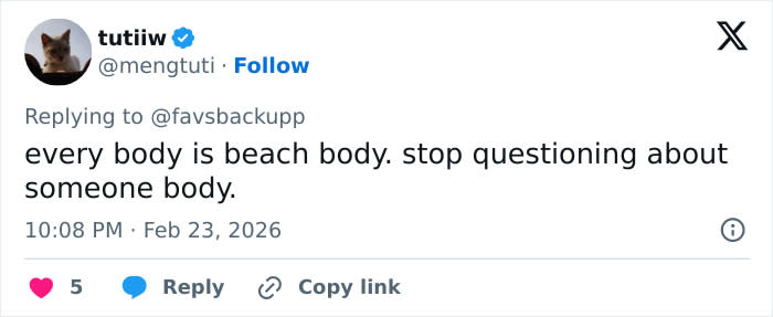 Another wrote, “It’s the swimsuit style that’s unflattering, not her body.”