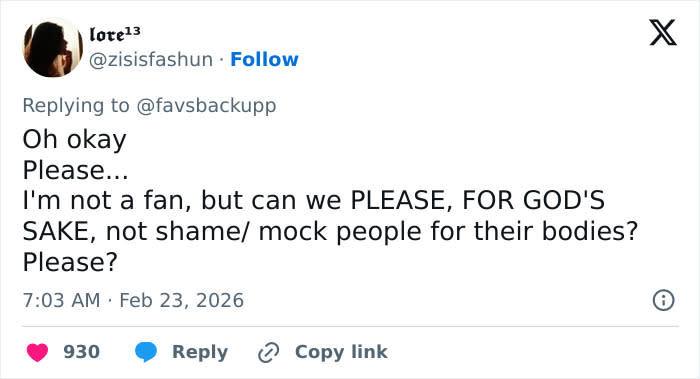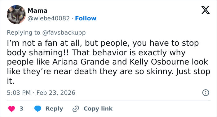 “She has serious health issues, and even if she didn’t, this post would still be incredibly classless,” another said.