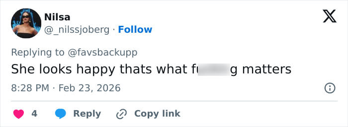 “She looks happy thats what f***ing matters,” one commented online