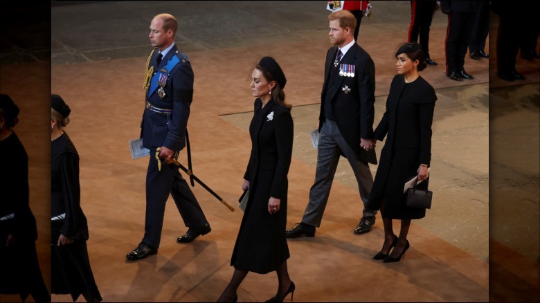Prince William’s hand swat recalled the couple’s seemingly strained body language in the days following Queen Elizabeth’s death. The Prince and Princess of Wales walked several feet apart, which was dramatically different from Prince Harry and Meghan Markle, who held hands nearby. “[Harry and Meghan] basically looked like they actually wanted to be in each other’s company, in complete contrast to Will and Kate,” wrote one Reddit user. They hardly looked like a couple on the same page. So much distance between them suggested there was serious tension.