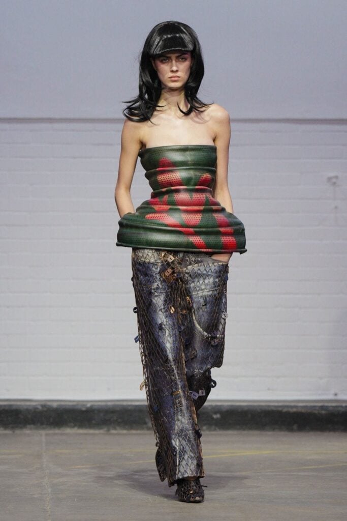 When it comes to Lola Young’s Macy Grimshaw look, from the designers her Central Saint Martins M.A. 2026 collection, it would have worked better for me had the proportions been pushed further, as we saw on the runway. The exaggerated shape was the point. Softening it for the red carpet made the look appear less flattering.
