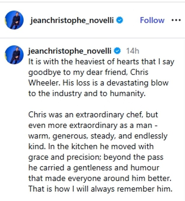 Great British Menu star Chris Wheeler has died as celebrity chef Jean-Christophe Novelli paid tribute to an ‘extraordinary’ man.
