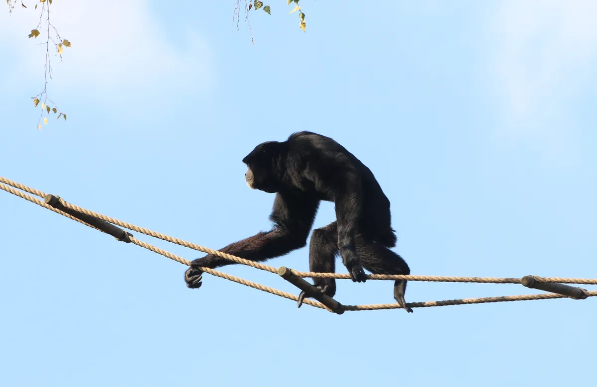 A Skywalker gibbon walks across a rope ladder. Ger Bosma/Getty