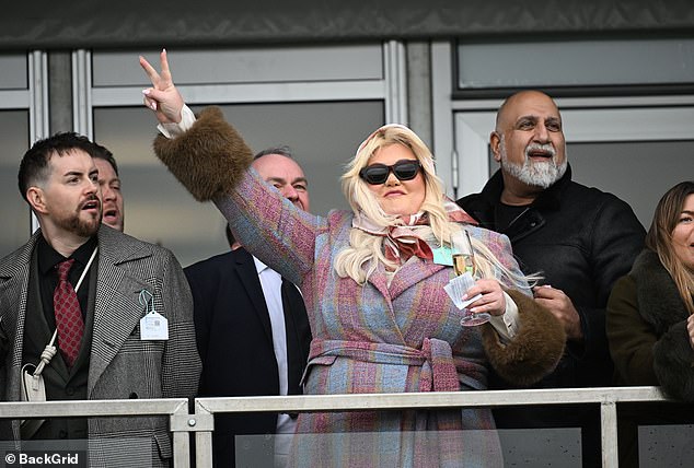 Gemma Collins cheered as she won £5,000 at the Cheltenham races on Thursday as she joined celebs getting into the spirit of things by quaffing champagne