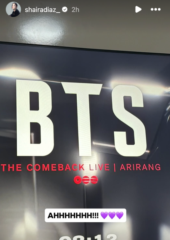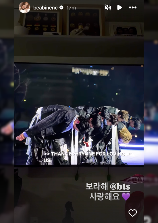 Golden Scenery of Tomorrow star also tuned in to the livestream. In her Instagram Story, she wrote in hangeul, “I purple you, BTS, I love you.”