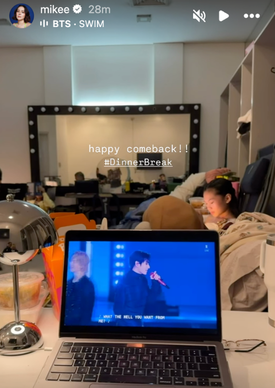 While busy with work, Encantandia Chronicles: Sang’gre star Mikee Quintos made sure to watch the concert during her dinner break. In her separate Instagram Stories, she reposted her sister’s video, in which her sister fangirled at home using her ARMY Bomb lightstick.