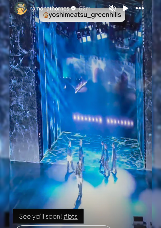 After the show, she posted purple hearts and heart hands emojis on her Instagram Story.