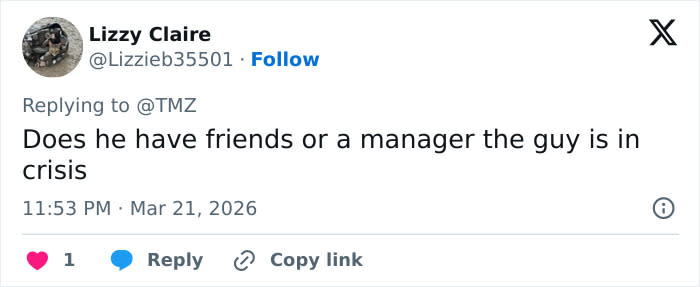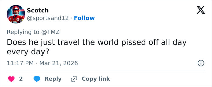 “He’s taking his craziness on a world tour lol,” one comment read.