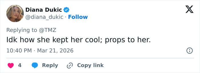 The woman did not respond and appeared to remain unfazed by the outburst.