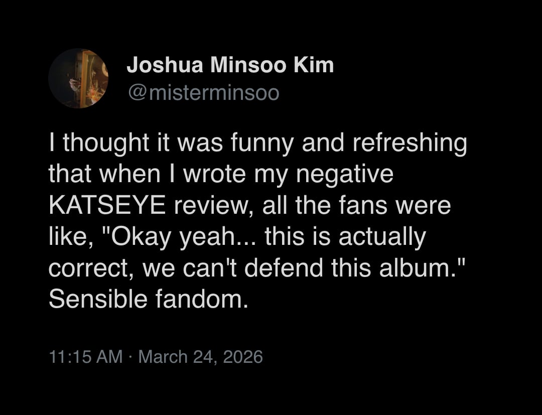 as a korean, the way that the non-korean stans are calling him a “self-hating korean” for his review is so funny. like pls be serious lmao