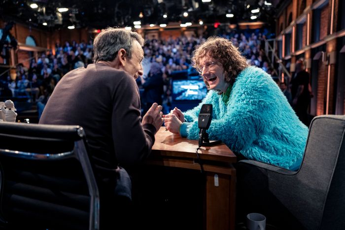 When Chris Fleming is on late night, you kind of just have to wind him up and let him go, and Late Night With Seth Meyers knows how to do exactly that. Meyers let Fleming riff for a crazy-long section of his couch time. Most of it was about how hot AP English horse girls would have found teen Seth. “Meanwhile, in my hometown, they were just trying to figure out the most humane way to put me down,” Fleming said. But the best part was when Meyers fact-checked Fleming’s special and said special’s derision of Meyers. “I bet you’ve never seen Seth Meyers do this kind of mic play,” Fleming said in Live at the Palace. Meanwhile, Meyers posed in the exact same way in his most recent spesh, Dad Man Walking. Interesting side note: Meyers called it “mic work” while Fleming called it “mic play.” That feels telling. Of what? Unclear, but telling nonetheless.