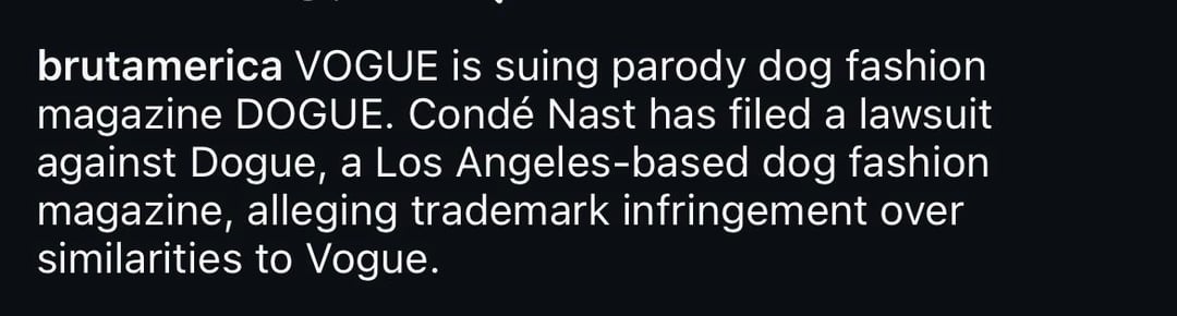 Vogue also has a Dogue IP, so this is pretty standard copyright. If you look further than âbig evil corporation vs underdogâ (lol) itâs not outside the realm of any other standard IP / Copyright infringement.