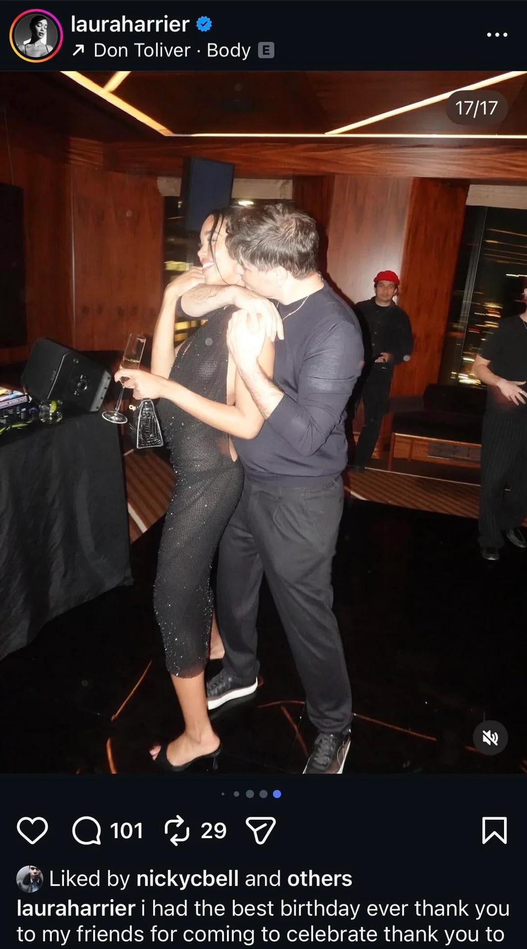 Laura Harrier seemingly launches her new boyfriend Helly Nahmad, close friend of Leonardo DiCaprio, on Instagram in a post for her birthday. Nahmad is a shady socialite and art dealer condemned (and pardoned by Donald Trump) for gambling in 2014.