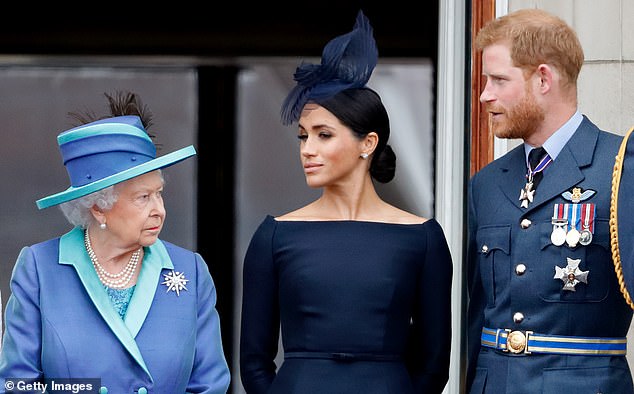 ‘The Queen was really wanting to give it a go,’ an insider recalled. ‘She was so sweet, she had brought Meghan a present and tried so hard. The train always left at 11 o’clock at night and the Queen was on the platform to welcome her. They had breakfast together in the morning and she was always trying to do small things, to show her the ropes and bring her in.’