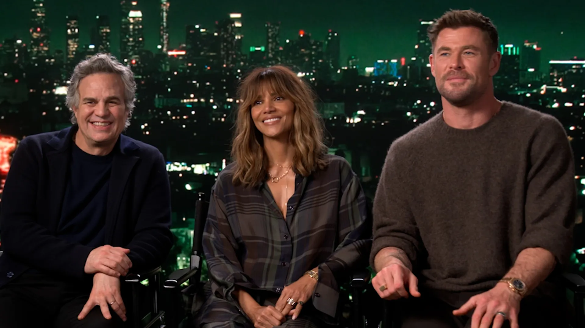 Mark Ruffalo, Halle Berry and Chris Hemsworth tell USA TODAY how the superheroes they’ve played would fare against their “Crime 101” characters.