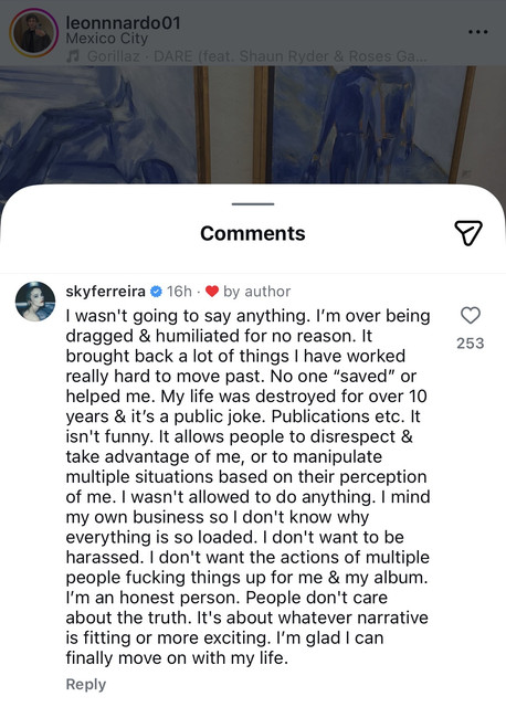I wasn’t going to say anything. I’m over being dragged & humiliated for no reason. It brought back a lot of things I have worked really hard to move past. No one “saved” or helped me. My life was destroyed for over 10 years & it’s a public joke. Publications etc. It isn’t funny. It allows people to disrespect & take advantage of me, or to manipulate multiple situations based on their perception of me. I wasn’t allowed to do anything. I mind my own business so I don’t know why everything is so loaded. I don’t want to be harassed. I don’t want the actions of multiple people fucking things up for me & my album. I’m an honest person. People don’t care about the truth. It’s about whatever narrative is fitting or more exciting. I’m glad I can finally move on with my life.