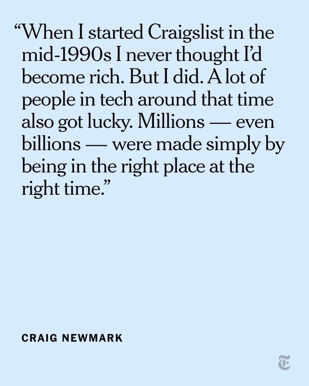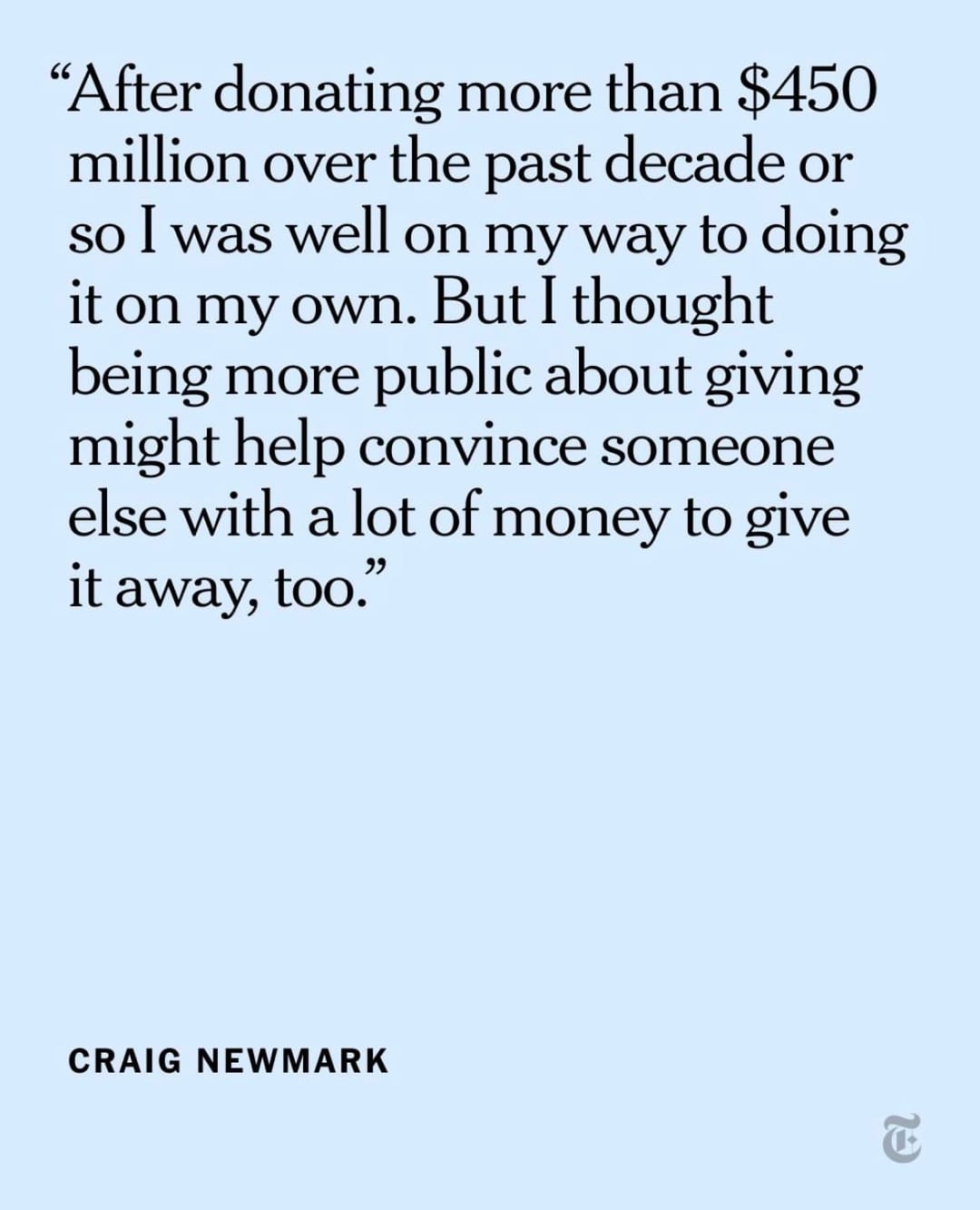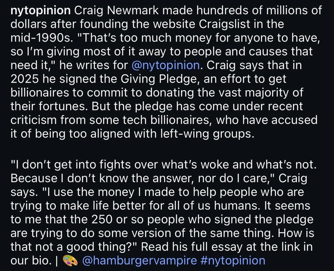 Craig Newmark made hundreds of millions of dollars after founding the website Craigslist in the mid-1990s. “That’s too much money for anyone to have, so l’m giving most of it away to people and causes that need it.” (New York Times)