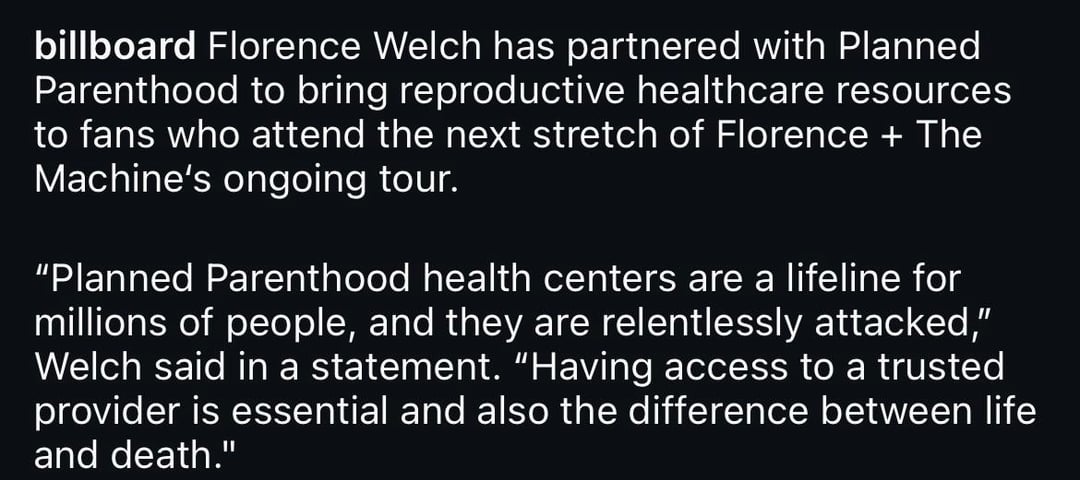 Florence Welch has partnered with Planned Parenthood to bring reproductive healthcare resources to fans who attend the next stretch of Florence + The Machine’s ongoing tour.