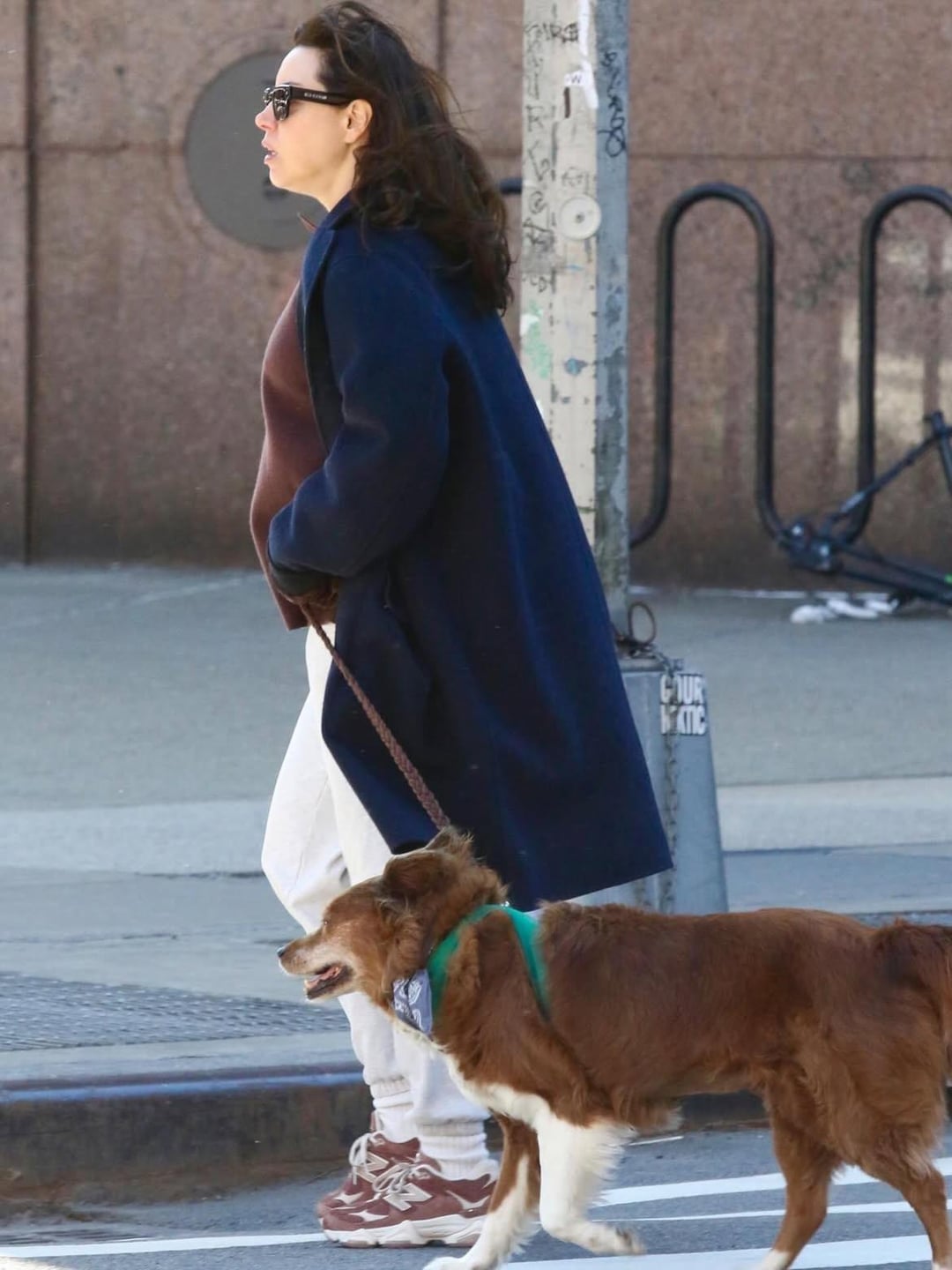 Aubrey Plaza spotted on a walk with her dog in NYC, a day after confirming her pregnancy with partner Christopher Abbott. (April 8, 2026)