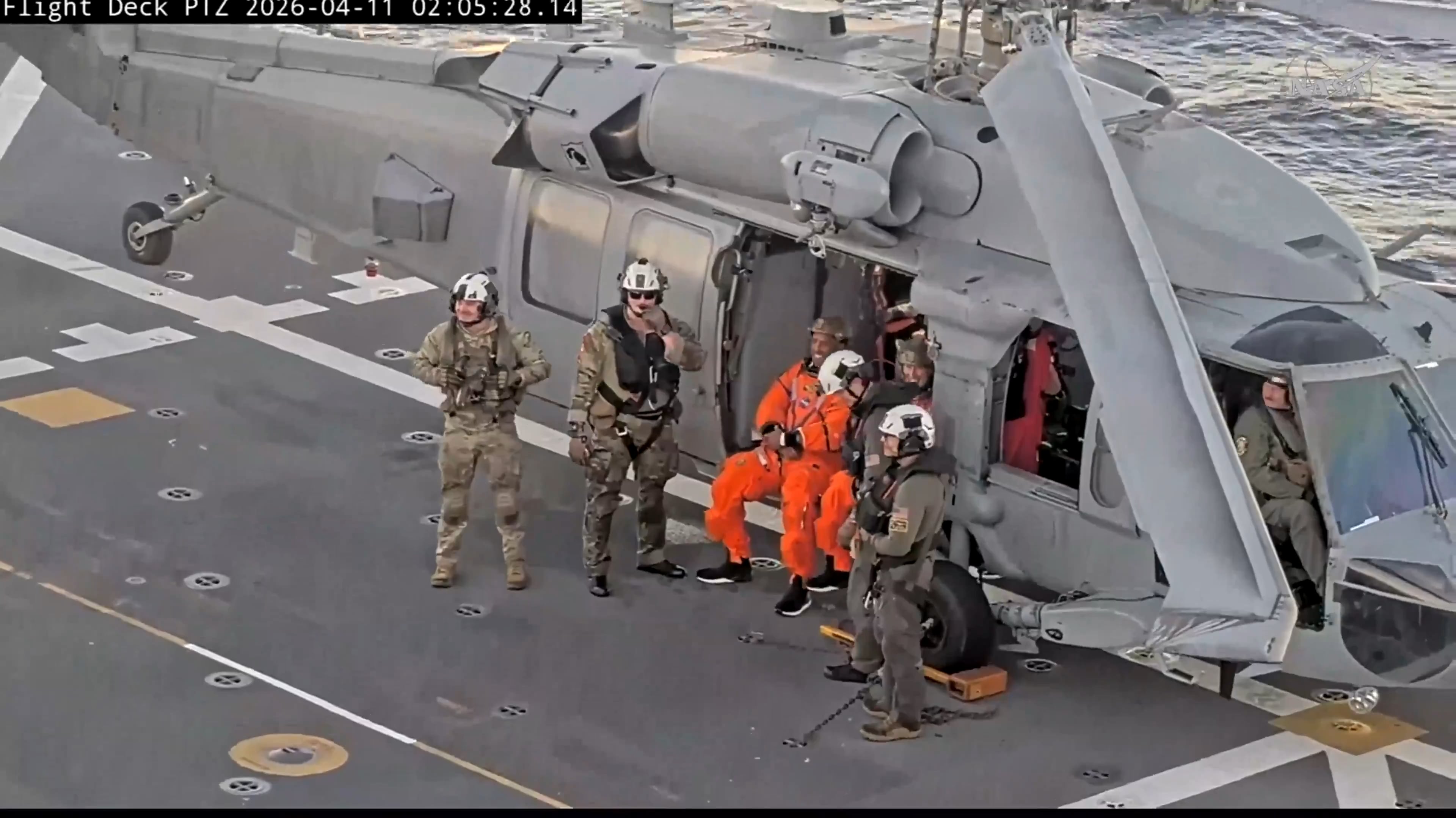 I wonder if it’s a strange sensation for them going from space to descent to landing to watercraft to aircraft. Get these people on some solid ground, damn!