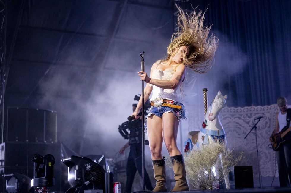 The Mojave Tent was jam-packed on Friday afternoon as Slayyyter took to the stage, where she sang the entirety of her new critically acclaimed album Wor$t Girl in America.