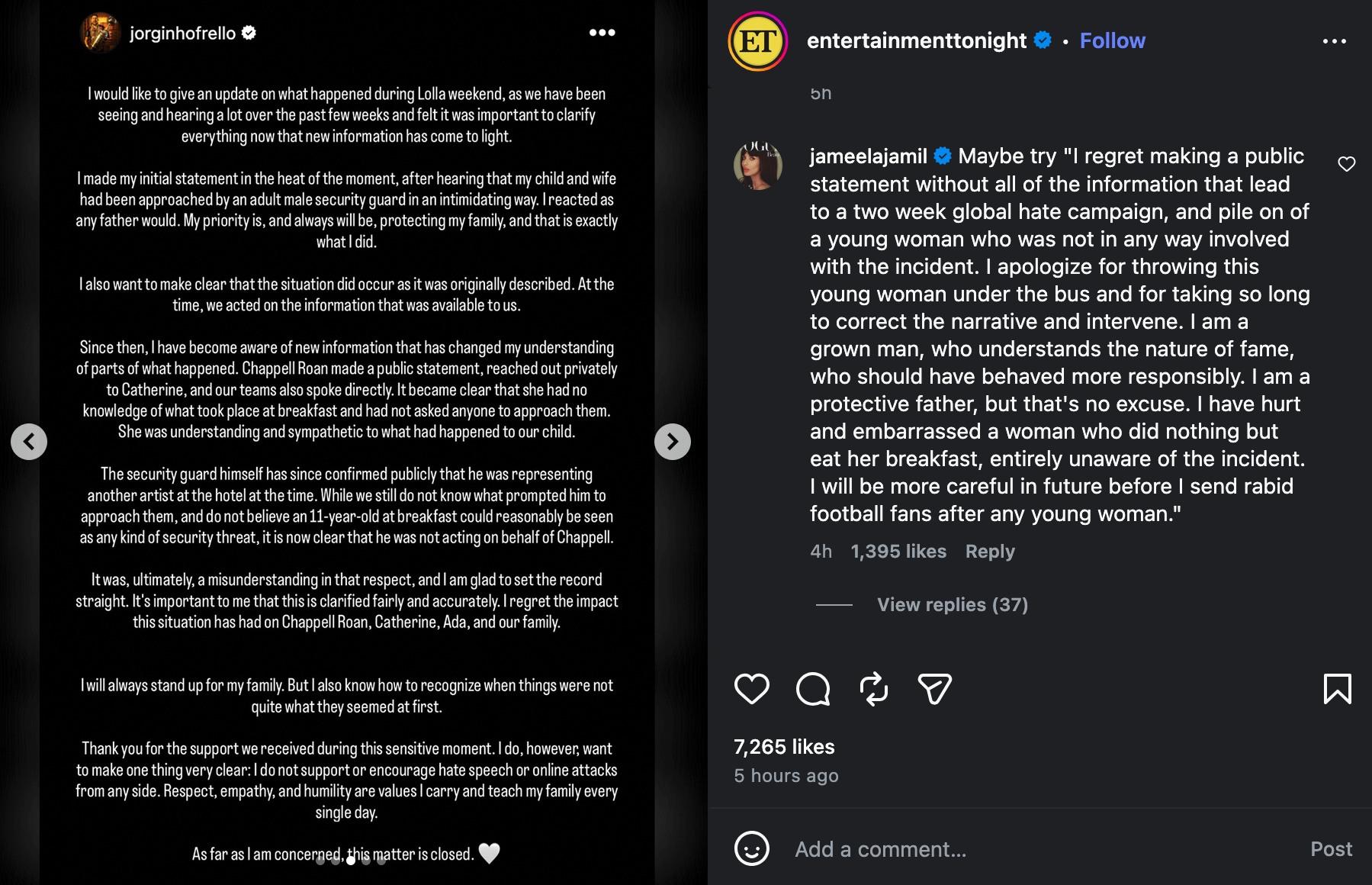 His whole “this matter is closed” is so gross too. Like hold on, maybe the woman you sent your fans after might have something to say dickhead? You started this, you don’t get to just declare it finished