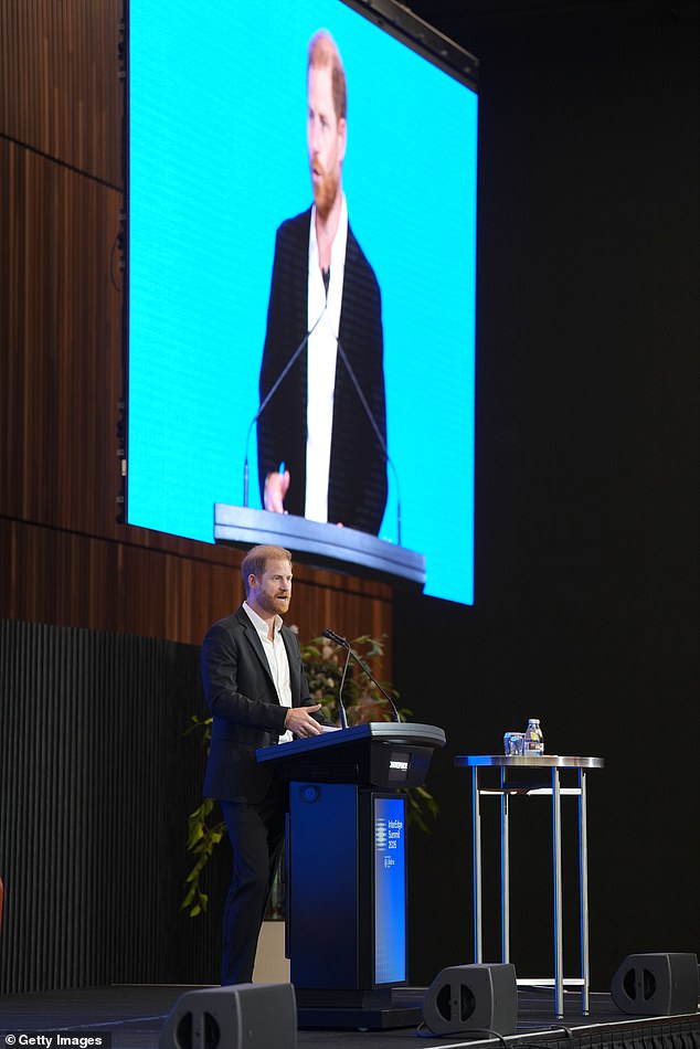 The Duke of Sussex then went to deliver the keynote speech at the InterEdge Summit, at Centrepiece in Melbourne Park, Victoria on day three of the royal trip