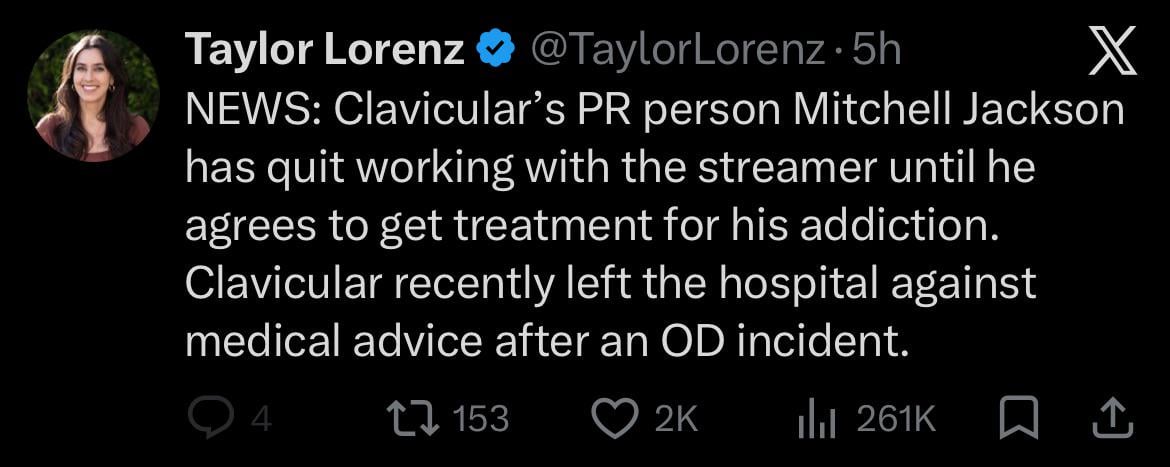More details from the Hollywood Reporter: https://www.hollywoodreporter.com/news/general-news/clavicular-pr-rep-quits-hospitalization-overdose-1236566619/